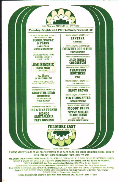 Fillmore Schedule . Courtesy: Jack Weston Original Fillmore East ephemera for sale - email jweston@mn.rr.comClick here to purchase a book written by a Fillmore East staff member. |